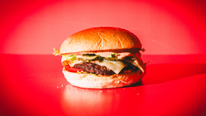 Bułka brioszka, 70g wybornej wołowiny, ser Cheddar, sałata, grillowana cebulka, pomidor, pikle ogórki oraz wysmashony sos
