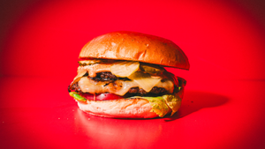 Bułka brioszka, 2 x 70g wybornej wołowiny, 2 x Cheddar, sałata, grillowana cebulka, pomidor, pikle ogórki oraz wysmashony sos