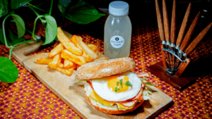 Bajgiel “Angielskie śniadanie” + Sernik Baileys